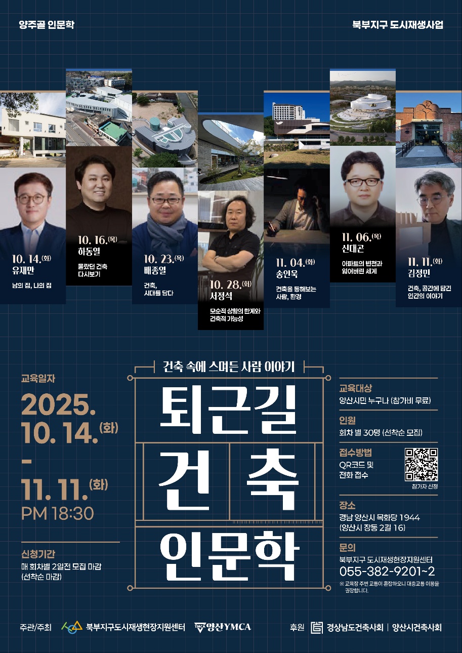양산YMCA가 북구지구도시재생현장지원센터와 함께 퇴근길 건축 인문학을 엽니다.