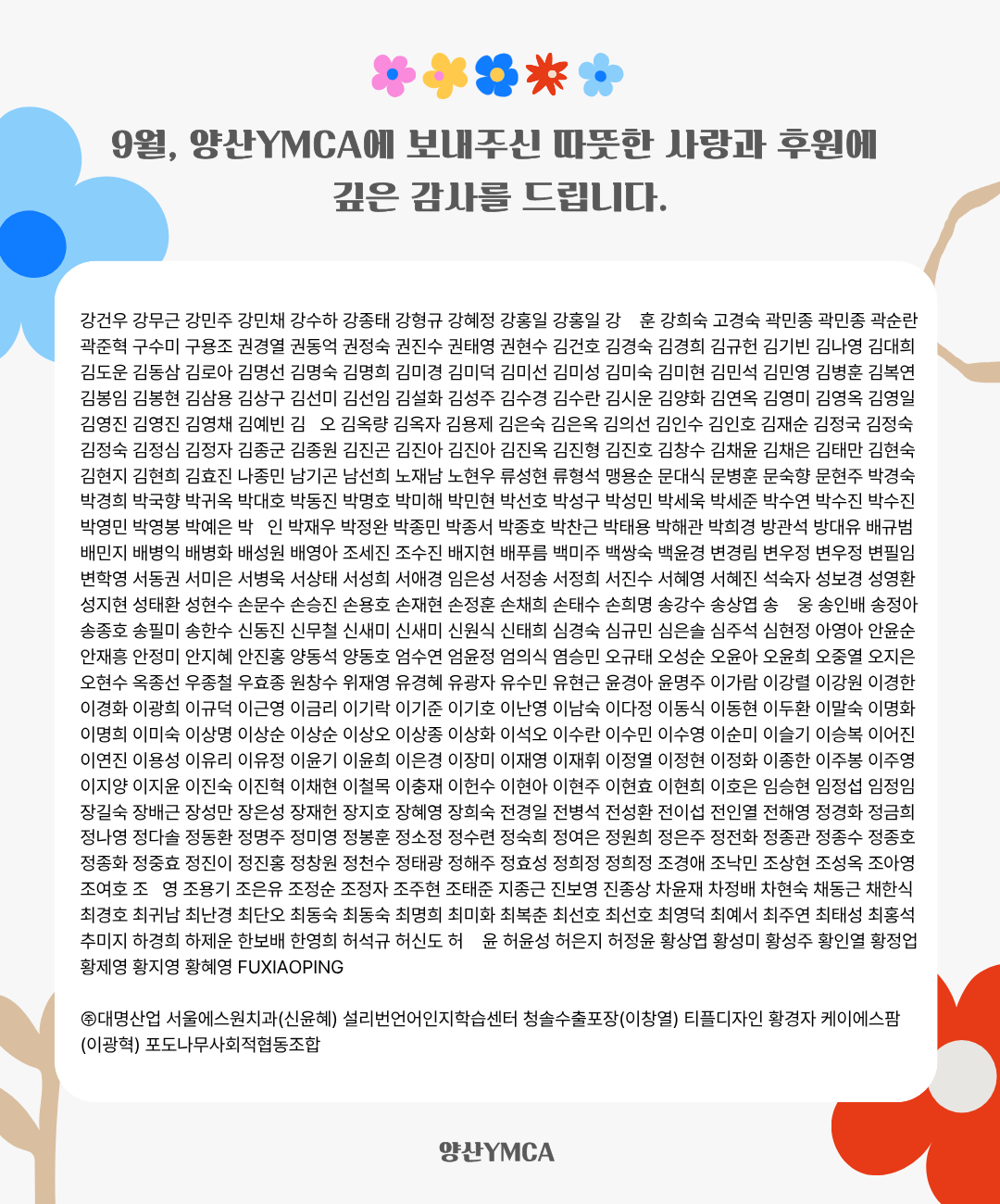 지속 가능한 YMCA를 만들어 주시는 CMS 회원님,