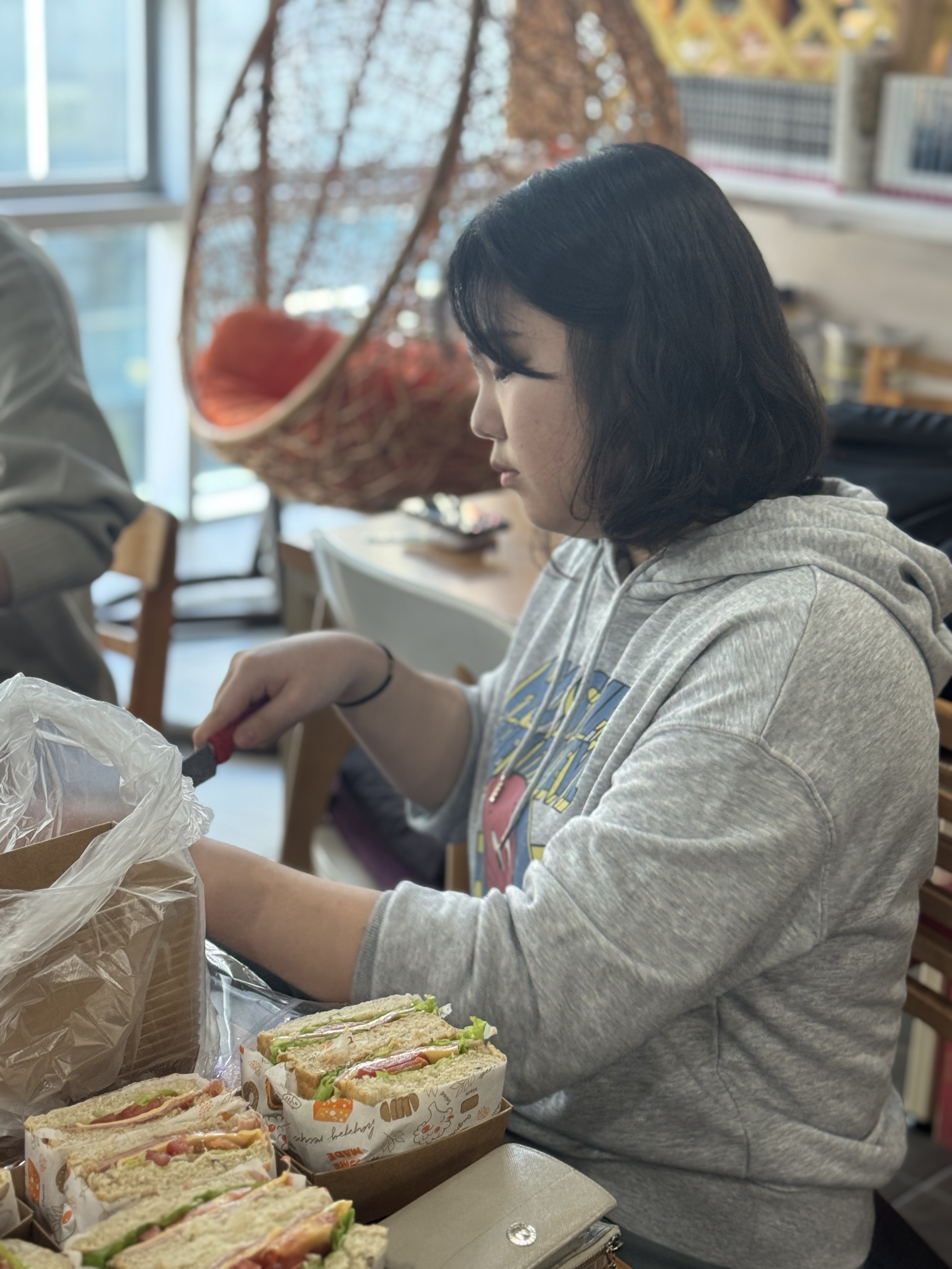 햄치즈 샌드위치🥪와 샤인머스캣·방울토마토🍇🍅가 들어간 컵과일이었습니다!