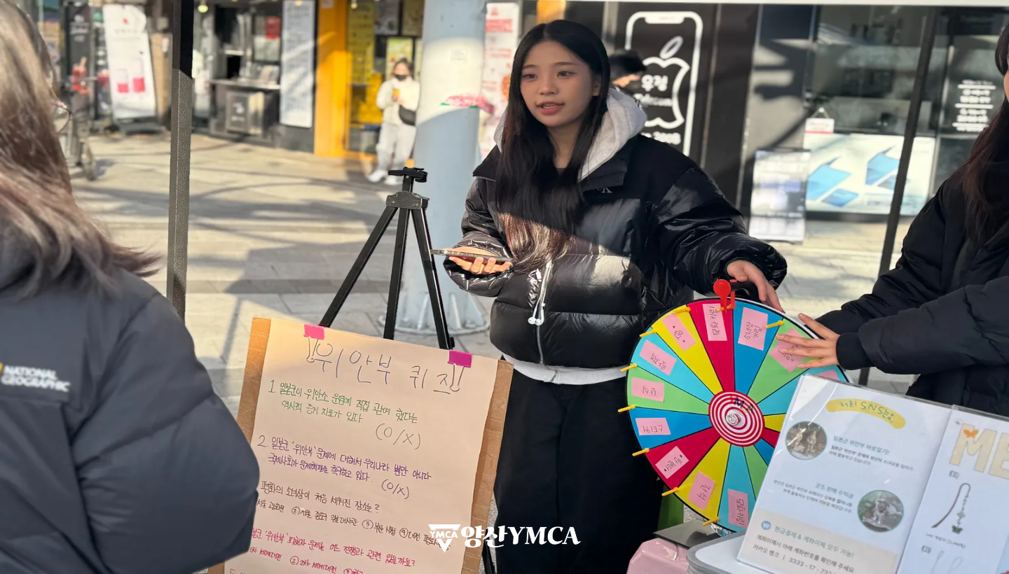 키링, 책갈피, 스티커를 판매하고, 수익금 전액을 일본군 '위안부' 관련 기관에 기부하기로 했어요! 또한, 시민들이 직접 참여할 수 있도록 일본군 '위안부' 과련 문제를 맞히는 코너도 함께 운영했습니다💛 |