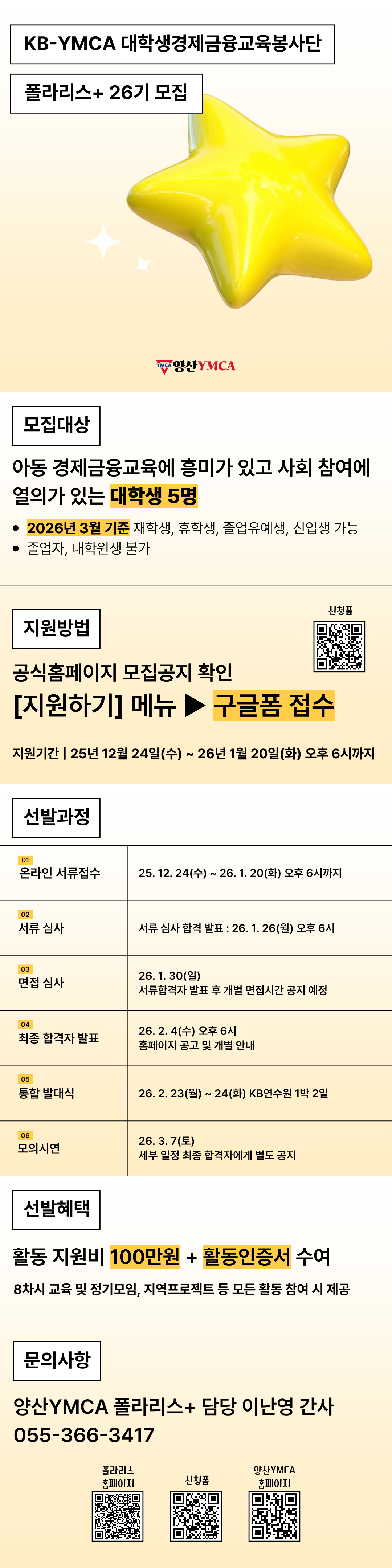 ⭐ KB-YMCA 대학생경제금융교육봉사단 폴라리스+ 26기 모집